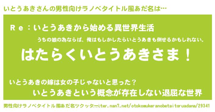 | 意味不明あだ名 | 『自称いとうあき』『永久保存いとうあき』 |