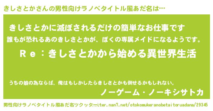 | 女子向けラノベタイトル風あだ名 | 『闇のきしさとか』『きしさとかの婚約者』 |