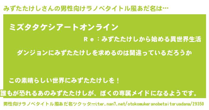 みずたたけしさんの男性向けラノベタイトル風あだ名をツクッター!