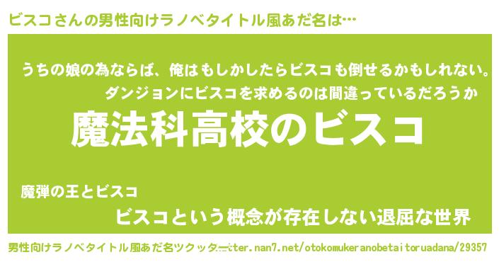 | 女子向けラノベタイトル風あだ名 | 『ビスコアンティーク』『ビスコの婚約者』 |