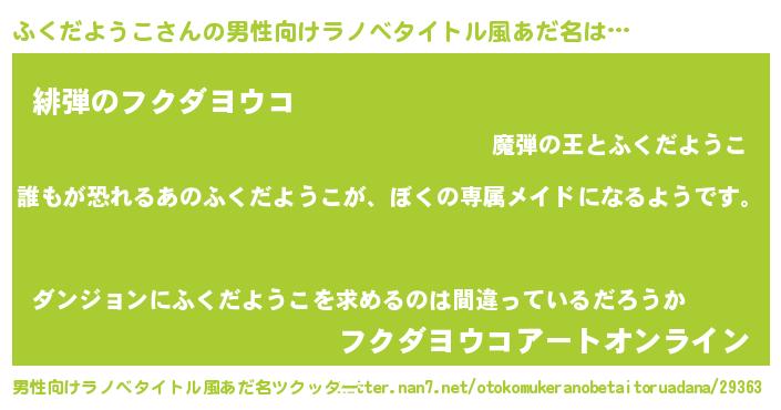 | 女子向けラノベタイトル風あだ名 | 『ふくだようこの契約王妃』 |