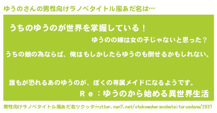 | 女子向けラノベタイトル風あだ名 | 『ゆうの伯爵の花嫁』『闇のゆうの』 |
