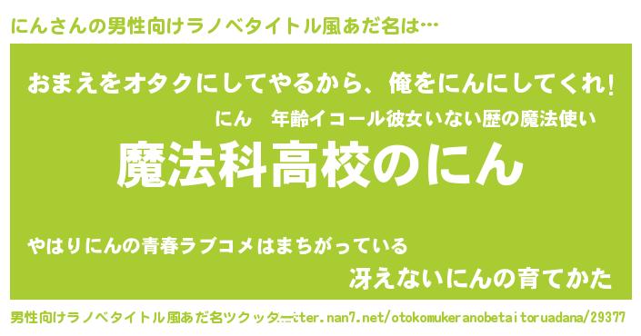 | 女子向けラノベタイトル風あだ名 | 『にんなんてお断りですっ。』 |