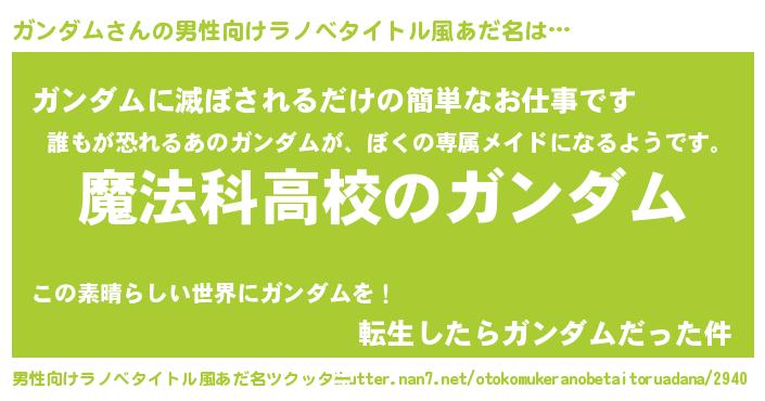 | 女子向けラノベタイトル風あだ名 | 『ガンダムなんてお断りですっ。』 |