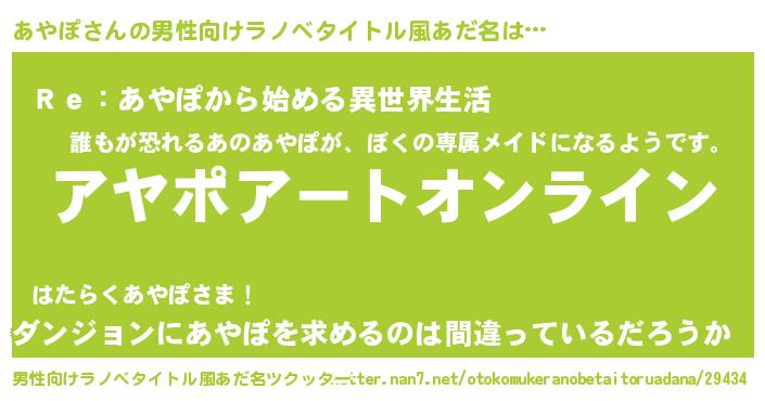 | 女子向けラノベタイトル風あだ名 | 『あやぽ姫と円卓の騎士』『闇のあやぽ』 |
