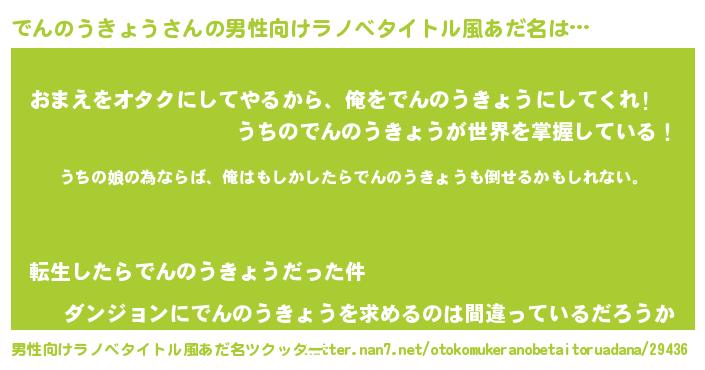 | 意味不明あだ名 | 『でんのうきょうフォーエバー』 |