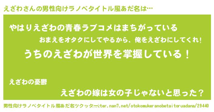 | 胡散臭い通販商品みたいなあだ名 | 『運命の人と巡り会える高級そうな壺…その名も「えざわ」』 |