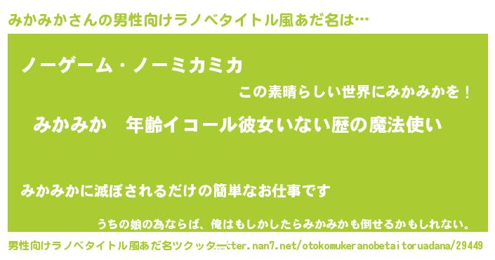 | 意味不明あだ名 | 『ヨモギ科みかみか属』 |