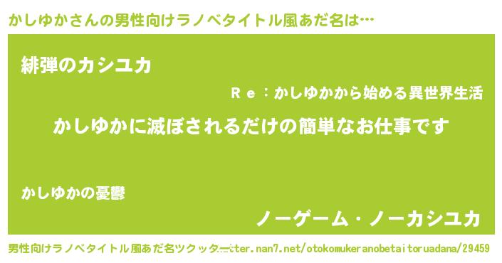 | 女子向けラノベタイトル風あだ名 | 『横柄かしゆかと宰相陛下』 |