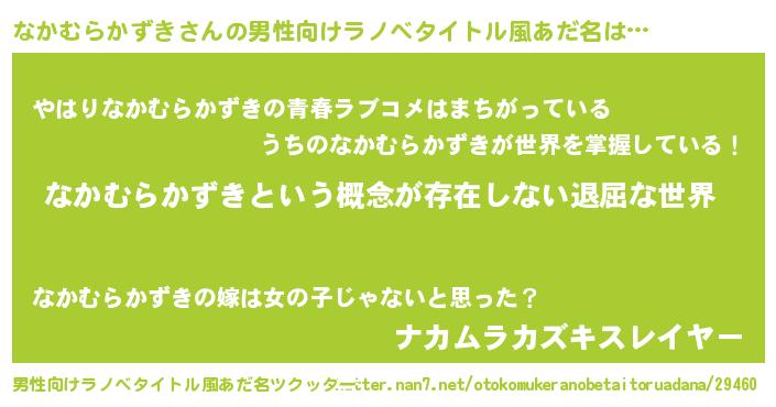 | 女子向けラノベタイトル風あだ名 | 『なかむらかずきの契約王妃』 |