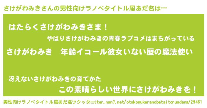 | ヘコむあだ名 | 『酢こんぶ』『さけもー』『さけっ子』 |
