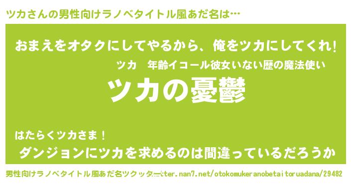 | 女子向けラノベタイトル風あだ名 | 『(仮)ツカのやんごとなき事情』 |