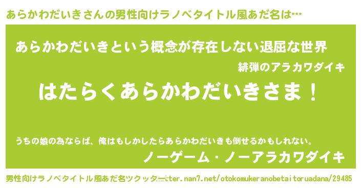 | 意味不明あだ名 | 『永久保存あらかわだいき』 |