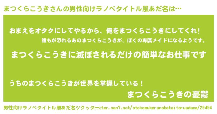 | 女子向けラノベタイトル風あだ名 | 『横柄まつくらこうきと宰相陛下』 |