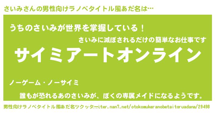 | 女子向けラノベタイトル風あだ名 | 『誰かこのさいみを説明してください! ~契約から始まるウェディング~』 |