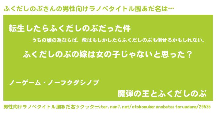 | 女子向けラノベタイトル風あだ名 | 『ふくだしのぶの卵を拾いまして』 |