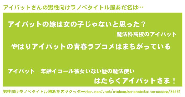 | 女子向けラノベタイトル風あだ名 | 『アイパットの雑貨屋さん』 |