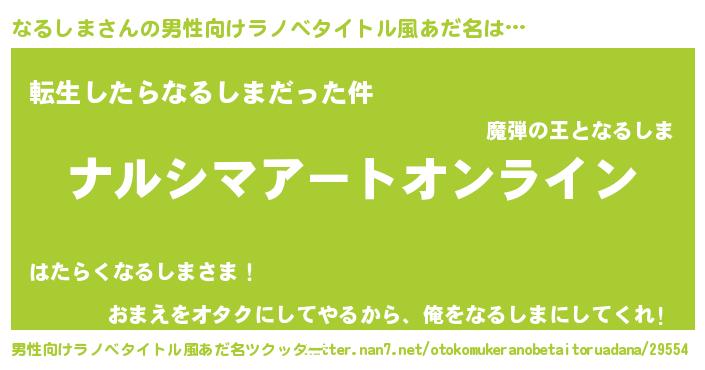 | 女子向けラノベタイトル風あだ名 | 『なるしま姫と円卓の騎士』 |
