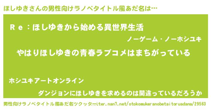 | ファンタジー風あだ名 | 『エターナルホシユキー』『ゼホシトゥ』 |