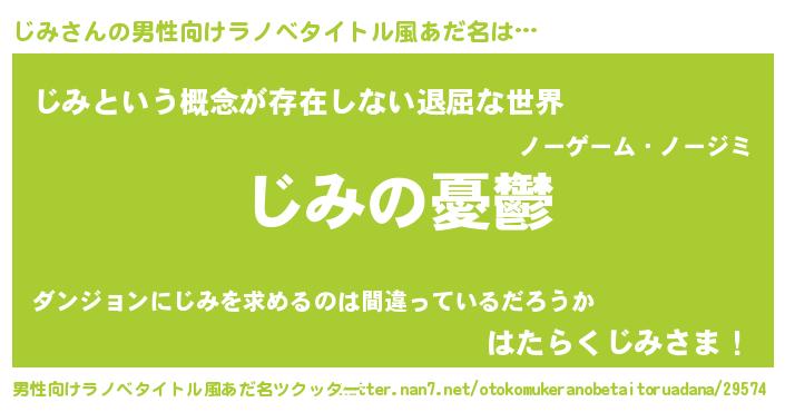 | 女子向けラノベタイトル風あだ名 | 『(仮)じみのやんごとなき事情』 |