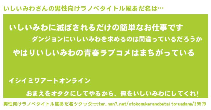 | 女子向けラノベタイトル風あだ名 | 『いしいみわ伯爵の花嫁』 |