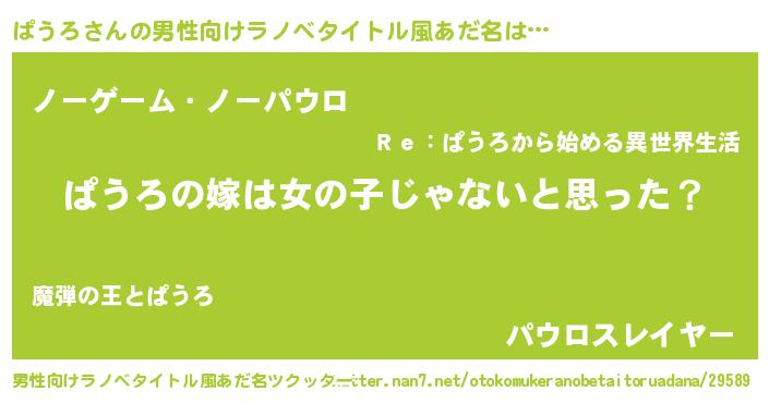 | ヒーロー風カッコイイあだ名 | 『幻影騎士パウ』『慈愛の使者ぱうろ』 |