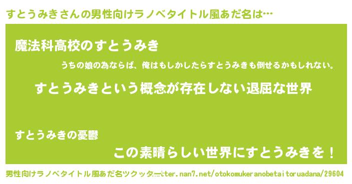 | 女子向けラノベタイトル風あだ名 | 『すとうみきの契約王妃』 |
