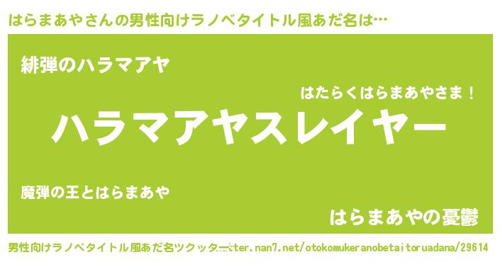 | 胡散臭い通販商品みたいなあだ名 | 『必ず成功する霊験あらたかなお札…その名も「はらまあや」』 |