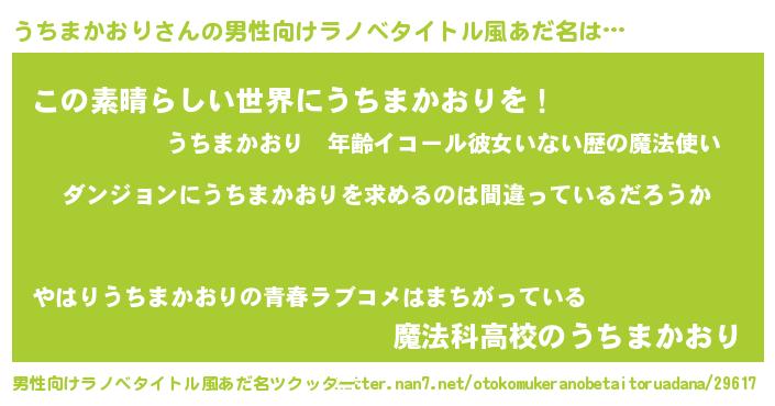| 女子向けラノベタイトル風あだ名 | 『うちまかおりは平凡を望む』 |