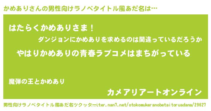 | 女子向けラノベタイトル風あだ名 | 『かめありの雑貨屋さん』 |