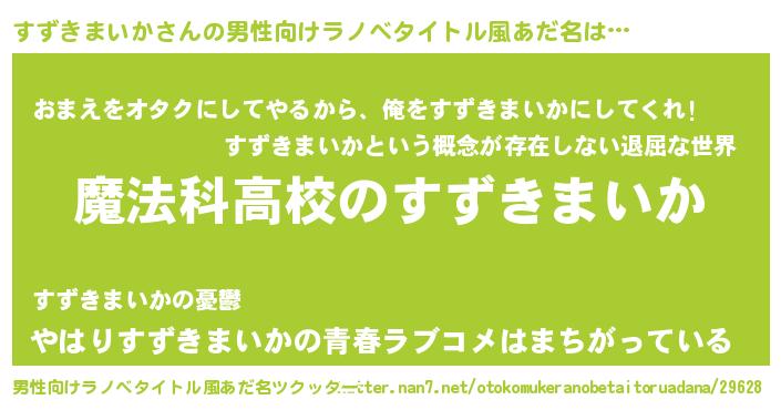 | 女子向けラノベタイトル風あだ名 | 『すずきまいかなんてお断りですっ。』 |