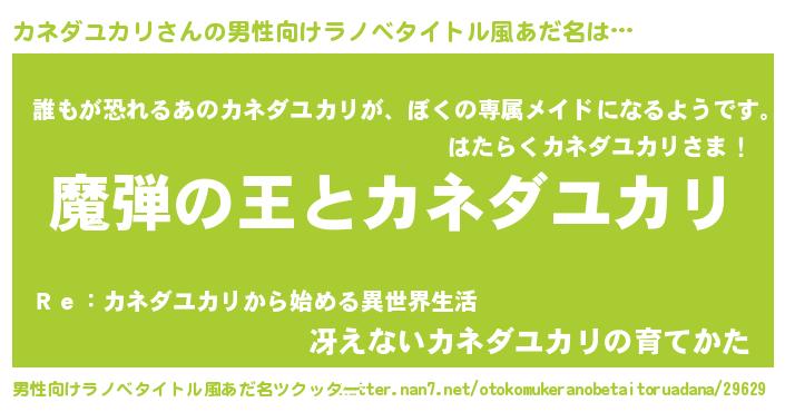 | 女子向けラノベタイトル風あだ名 | 『乙女ゲームの破滅フラグしかない悪役カネダユカリに転生してしまった…』 |