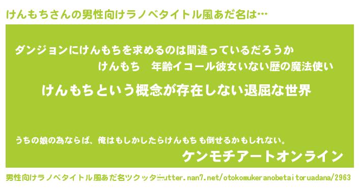 | ヘコむあだ名 | 『けんもち(笑)』『けんを』 |