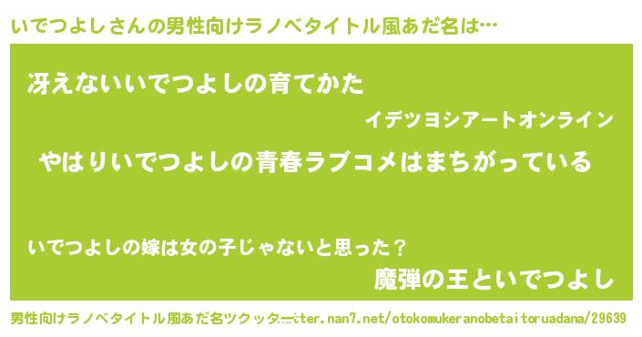 | 女子向けラノベタイトル風あだ名 | 『いでつよし伯爵の花嫁』 |