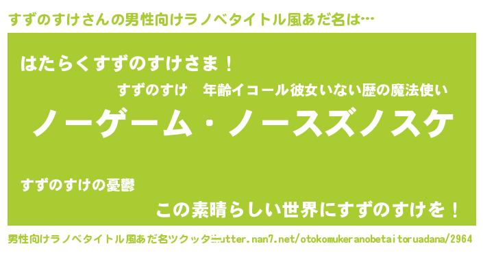 | 女子向けラノベタイトル風あだ名 | 『死神すずのすけの再婚』 |