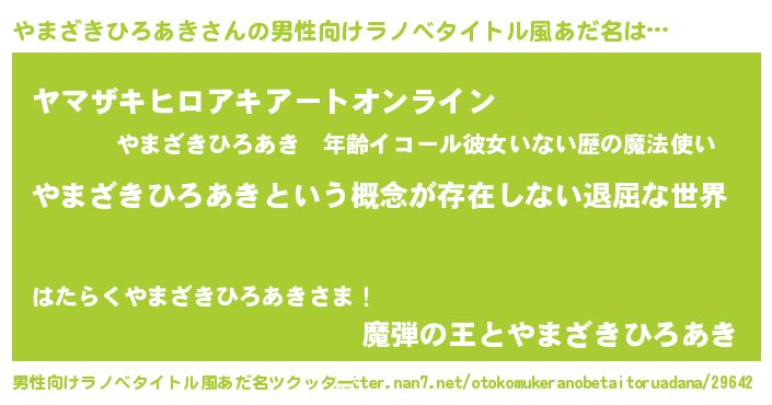 | 女子向けラノベタイトル風あだ名 | 『異世界で失敗しない100のやまざきひろあき』 |