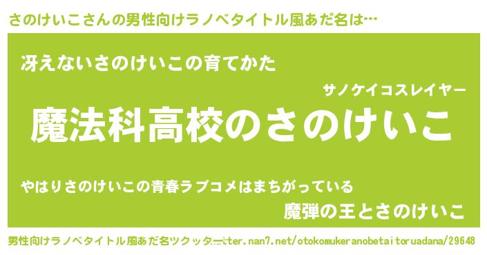 | ヒーロー風カッコイイあだ名 | 『ウルトラ戦士サノケイコ』 |