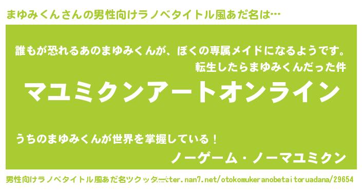 | 胡散臭い通販商品みたいなあだ名 | 『億万長者になれるブレスレット…その名も「まゆみくん」』 |