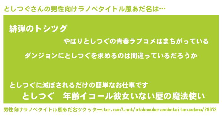 | 女子向けラノベタイトル風あだ名 | 『としつぐは平凡を望む』 |