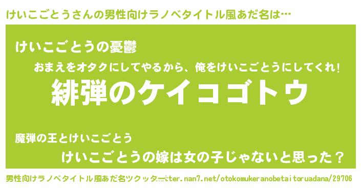 | 胡散臭い通販商品みたいなあだ名 | 『必ず成功するブレスレット…その名も「けいこごとう」』 |