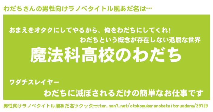 | 女子向けラノベタイトル風あだ名 | 『わだちアンティーク』『わだち恋絵巻』 |