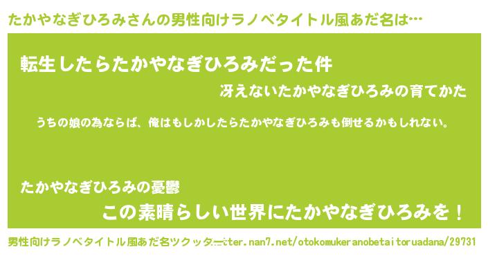 | 女子向けラノベタイトル風あだ名 | 『たかやなぎひろみの婚約者』 |