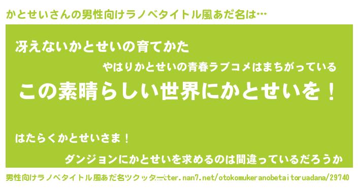 | 意味不明あだ名 | 『住所不定無職かとせい(14歳)』 |