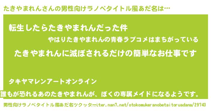 | ヘコむあだ名 | 『たきやまれん(小並感)』『レバニラ』 |