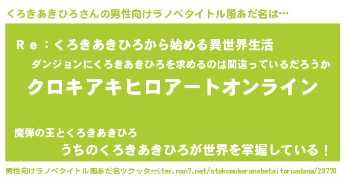 | 女子向けラノベタイトル風あだ名 | 『誰かこのくろきあきひろを説明してください! ~契約から始まるウェディング~』 |