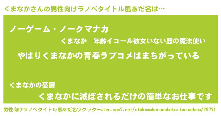 | 女子向けラノベタイトル風あだ名 | 『くまなかの雑貨屋さん』 |