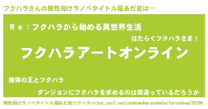 | 意味不明あだ名 | 『ペロリンフクハラ』『自称フクハラ』 |