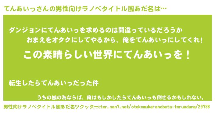 | 女子向けラノベタイトル風あだ名 | 『悪役てんあいっに転生したようですが、知った事ではありません』 |