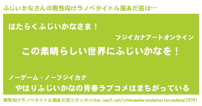 | 女子向けラノベタイトル風あだ名 | 『悪役ふじいかなに転生したようですが、知った事ではありません』 |