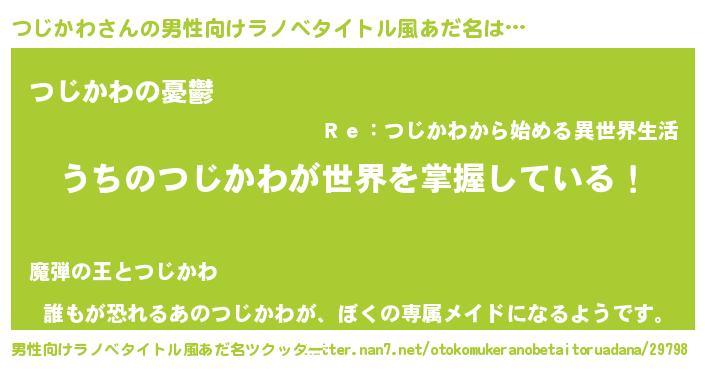 つじかわさんの男性向けラノベタイトル風あだ名をツクッター!